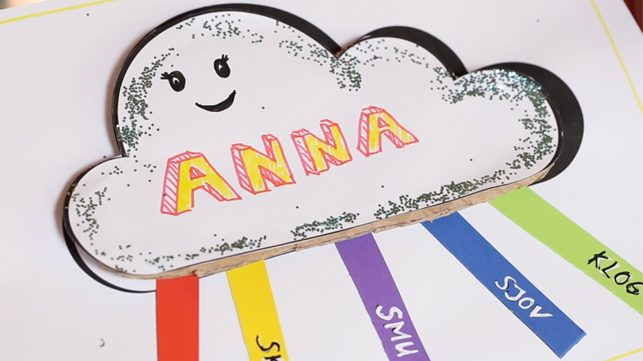 Børn elsker at få gaver, men de elsker faktisk også at give gaver. Hvorfor ikke hjælpe dit barn med at lave en gave, som gør modtageren ekstra glad? På den venlige sky skriver man modtagerens navn, og på regnbuestrålerne skriver man alle de positive ting, man forbinder personen med. Husk at putte masser af farver og glimmer på! En hyggelig gave, som børn kan give til en, de holder af.