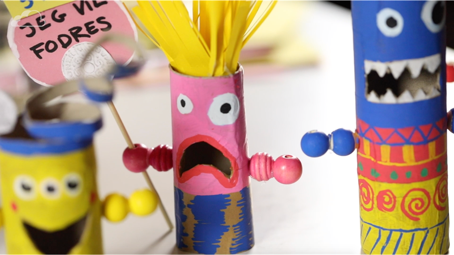 Det eneste, I behøver for at kreere de farverige pengemonstre, er toiletrullerør, saks og farver. Husk også at give monstrene et lille skilt med deres yndlingsmønt på, så I sørger for at fodre de rigtige monstre med de rigtige mønter.